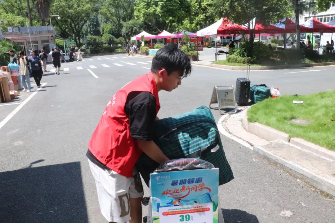 据悉,为做好本次迎新工作,鹿城学院多次召开迎新工作专题会议,反复推敲迎新工作方案。当天,师生志愿者们身穿红马甲,分工明确,坚守岗位,满怀热情地迎接每一位新生,用细致入微的服务传递鹿城学院大家庭的温暖,让新生获得良好的入学体验。同时,鹿城学院特邀请蒲鞋市派出所民警、横河社区工作人员为新生做反诈防骗、禁毒等相关宣传。除此之外,为了给新生营造一个轻松有趣的开学氛围,让他们对开学第一天留下深刻印象,鹿城学院特采购新生专属幸运开学盲盒,供前100名报到的新生领取,并组织记“鹿”这一刻,我与鹿城学院的第一张合影活动,特邀摄影达人--鹿城学院党总支书记、院长叶吉波亲自给新生拍照。在大家的共同配合下,迎新工作有条不紊,秩序井然,校园呈现出生机勃勃的新面貌,充满欢声笑语。